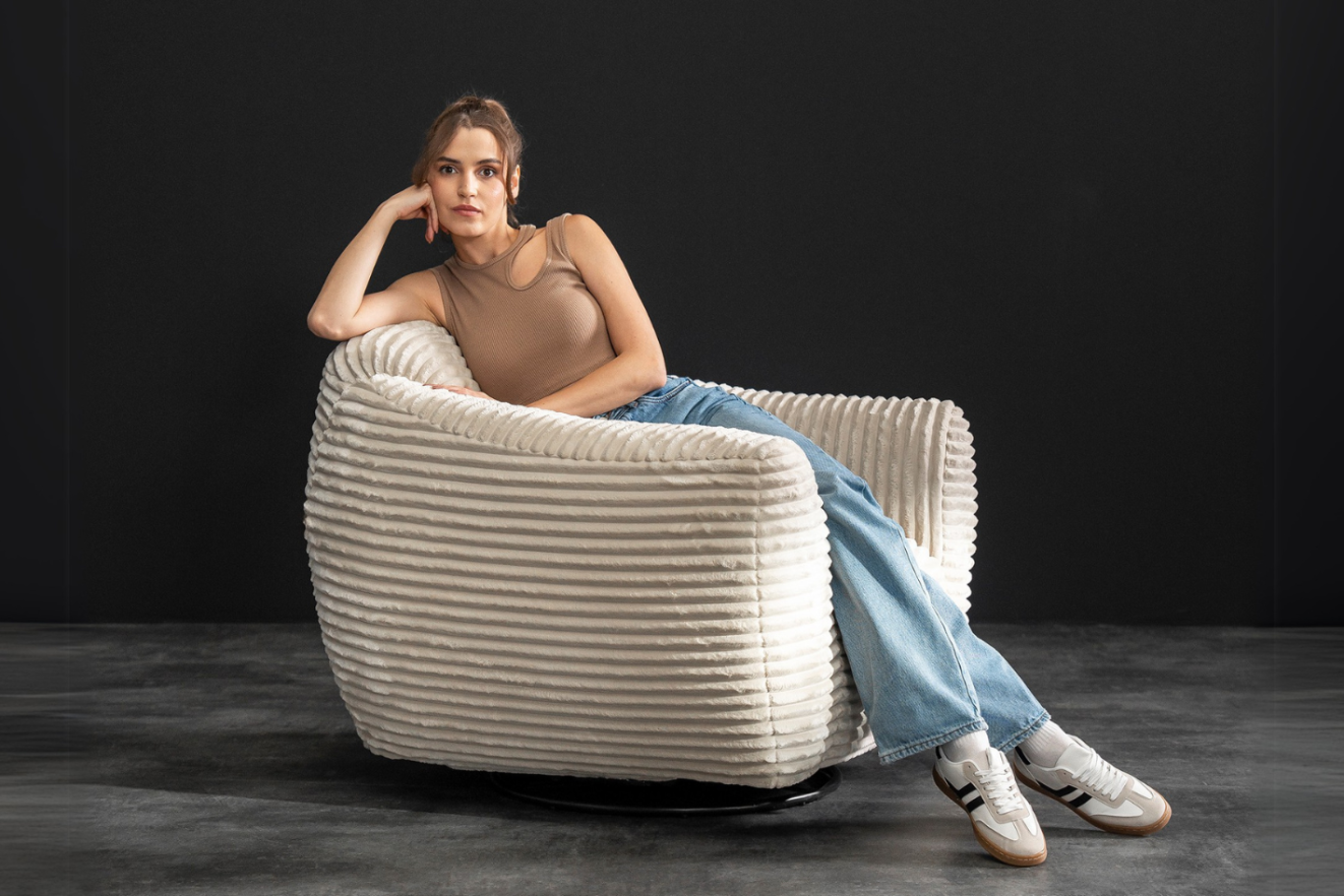 Fotel Sfera z obrotową i bujaną platformą to idealne połączenie komfortu i nowoczesnego designu. Ergonomiczny kształt, funkcja obrotu o 360 stopni i możliwość blokady bujania sprawiają, że fotel doskonale dopasowuje się do różnych potrzeb, gwarantując wygodę i styl w każdym wnętrzu.