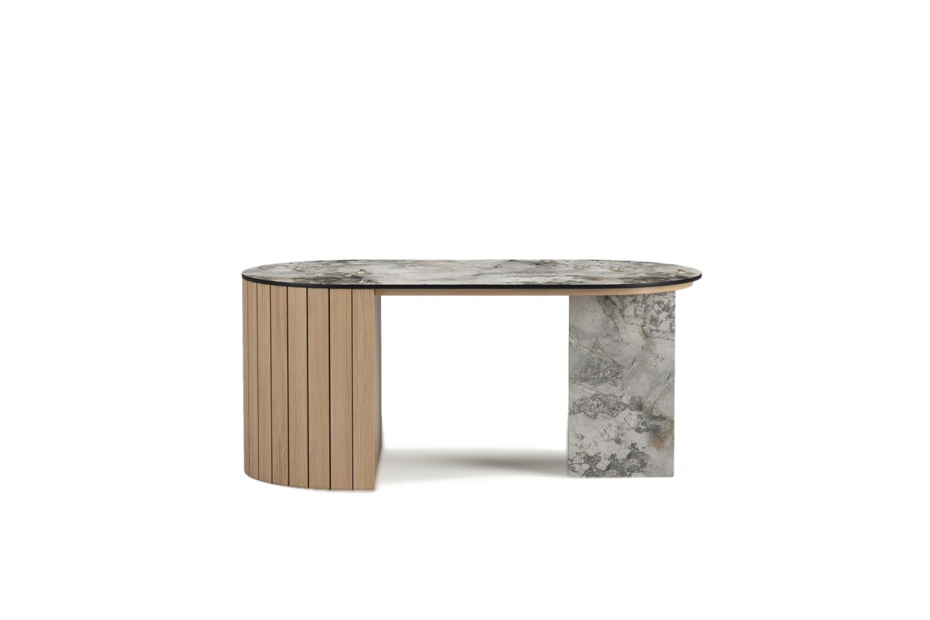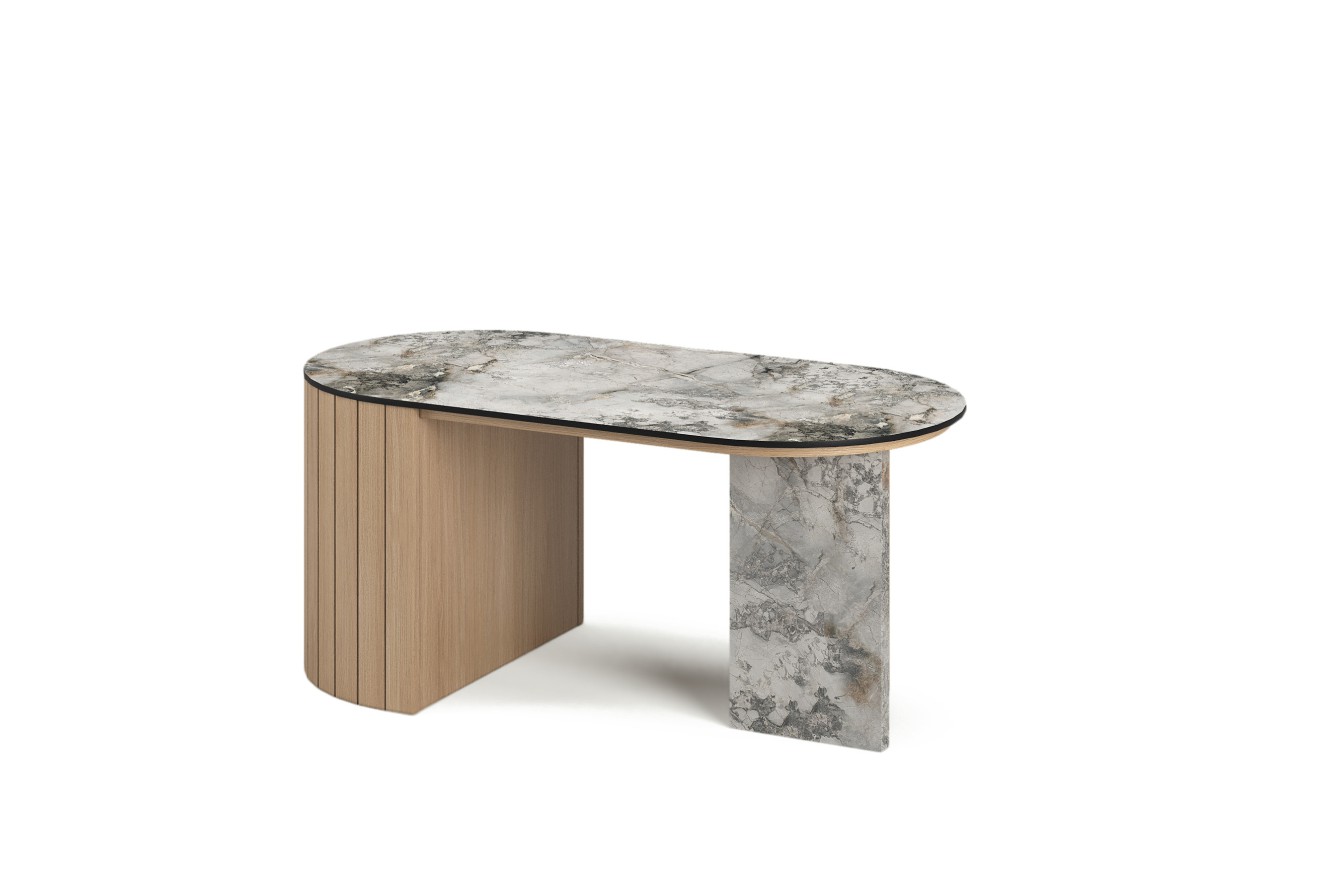 Stolik kawowy MILA z blatem Biały Marmur Lodowy reprezentuje najwyższy poziom elegancji w kategorii mebli salonowych. Ekskluzywne wymiary 110x55x48 cm zapewniają idealne proporcje dla nowoczesnych salonów. Charakterystyczny wzór białego marmuru w połączeniu z korpusem dąb piaskowy tworzy luksusową kompozycję. Minimalistyczna forma bez nóżek nadaje meblu unikalny charakter. Najwyższej jakości materiały gwarantują długotrwałą żywotność tego wyjątkowego elementu salonu.