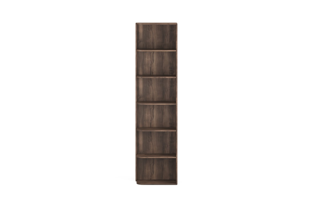 Regał otwarty MILA z łukiem i półkami w kolorze dąb barokowy to nowoczesny element dekoracyjny o wymiarach 30x60x230 cm. Unikalna konstrukcja z łukiem nadaje meblu charakterystyczny wygląd. Wykonany z wysokiej jakości płyty laminowanej odpornej na zarysowania i promieniowanie UV. Półki zapewniają funkcjonalne miejsce na książki dekoracje i akcesoria. Minimalistyczna forma bez uchwytów podkreśla nowoczesny design mebla z kolekcji MILA.