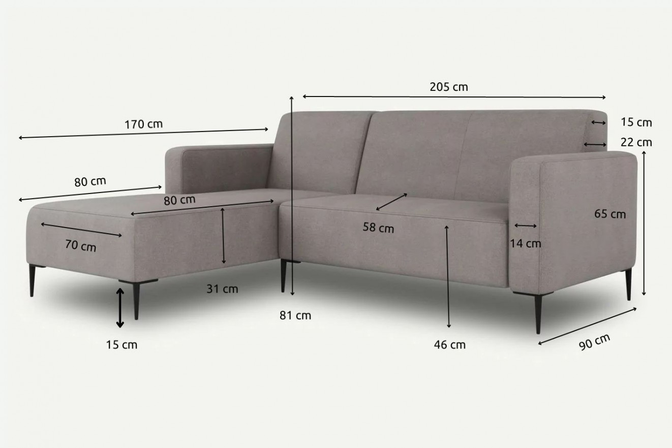 Bolder jest wysoce komfortowym i eleganckim narożnikiem pasującym do małych i średnich wnętrz. Jego delikatna rama i smukłe nóżki nadają meblowi lekkości i podkreślają jego linię. Nie ma nic lepszego niż odprężyć się po wyczerpującym dniu na swoim ulubionym narożniku.
