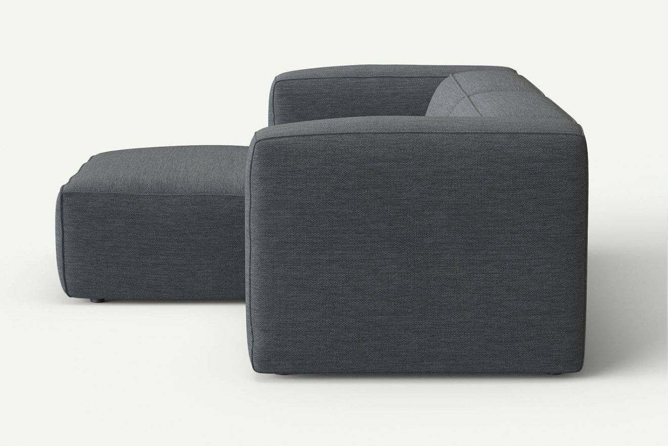 Moved XL jest to większa wersja standardowego narożnika Moved ,który jest szerszy, głębszy oraz posiada dłuższy szezlong. Widoczna jest też różnica w wyglądzie otomany , ponieważ część została uszyta w całości bez dzielenia pufy.