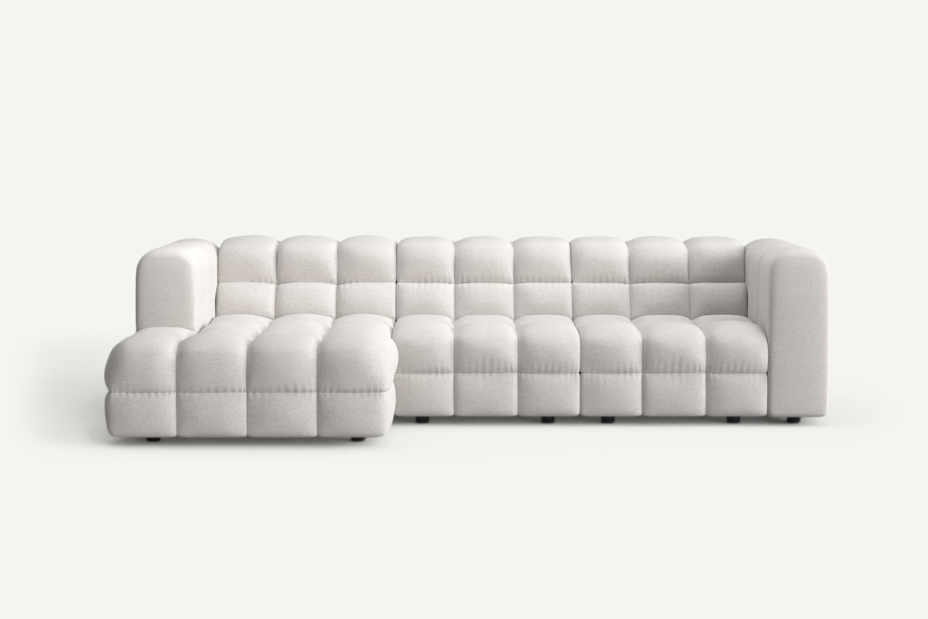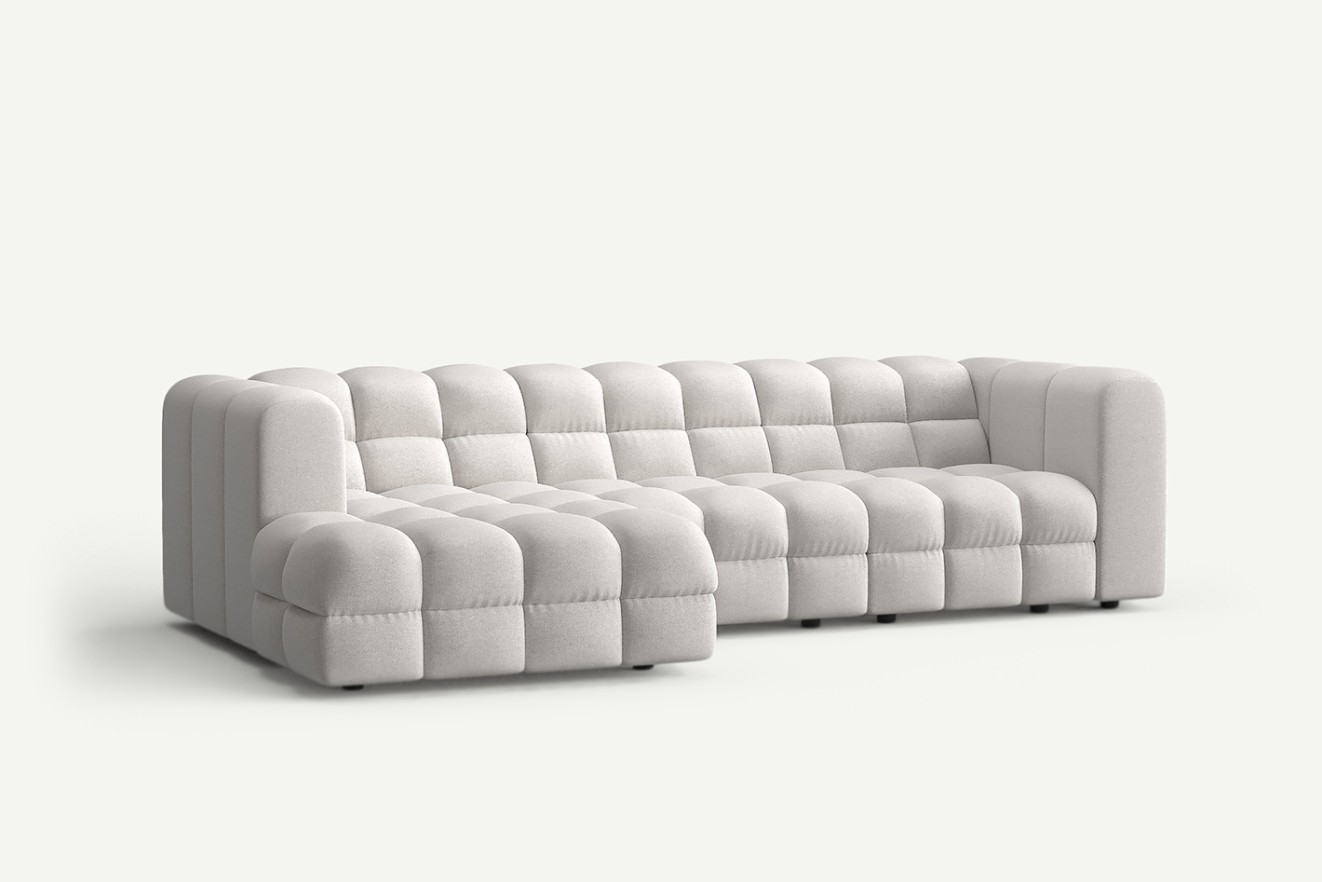 Narożnik modułowy Story to nowoczesny mebel z eleganckim pikowanym siedziskiem i zaokrąglonymi oparciami. Modułowa konstrukcja i przestronne wymiary zapewniają wygodę oraz możliwość dopasowania do każdego wnętrza.
