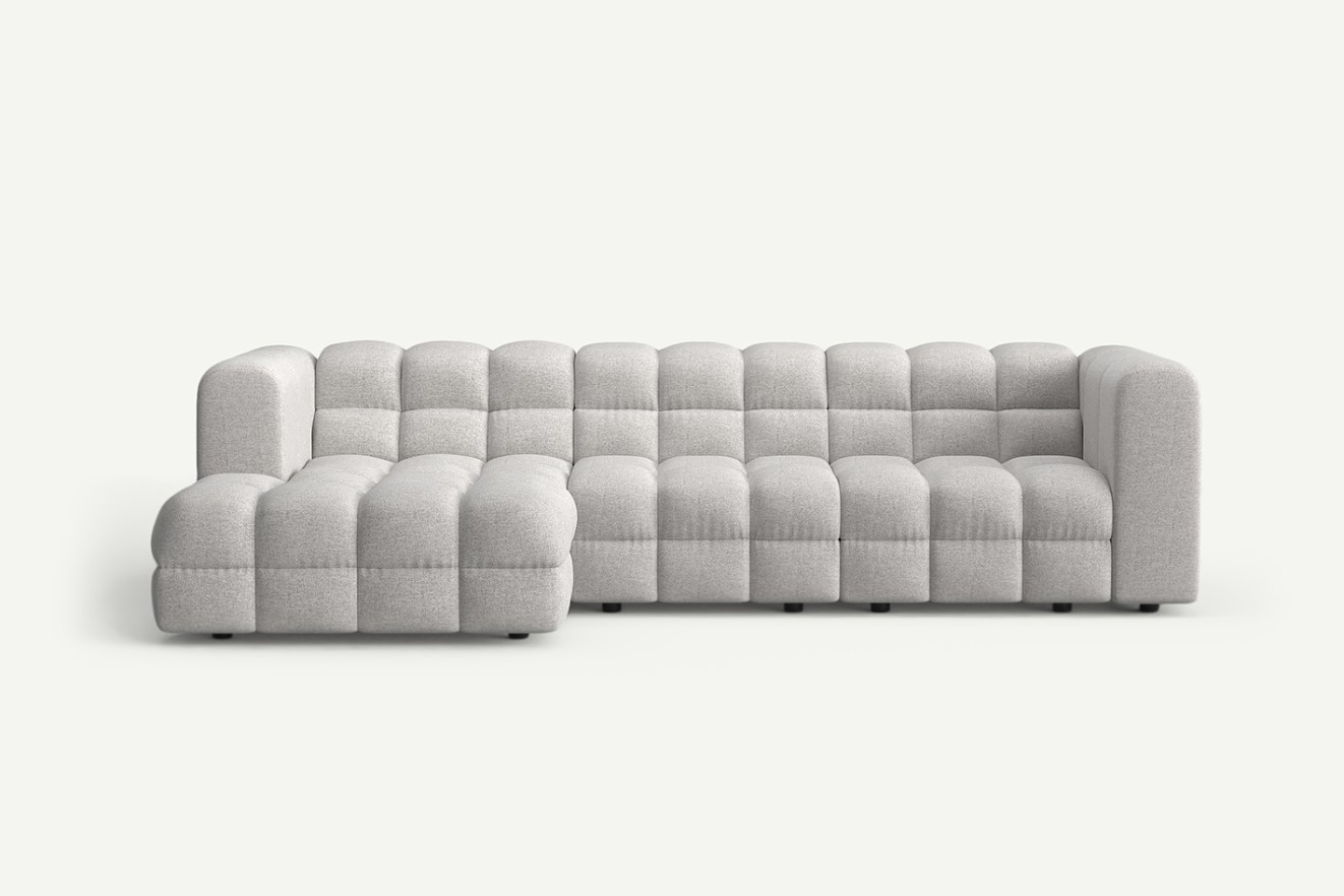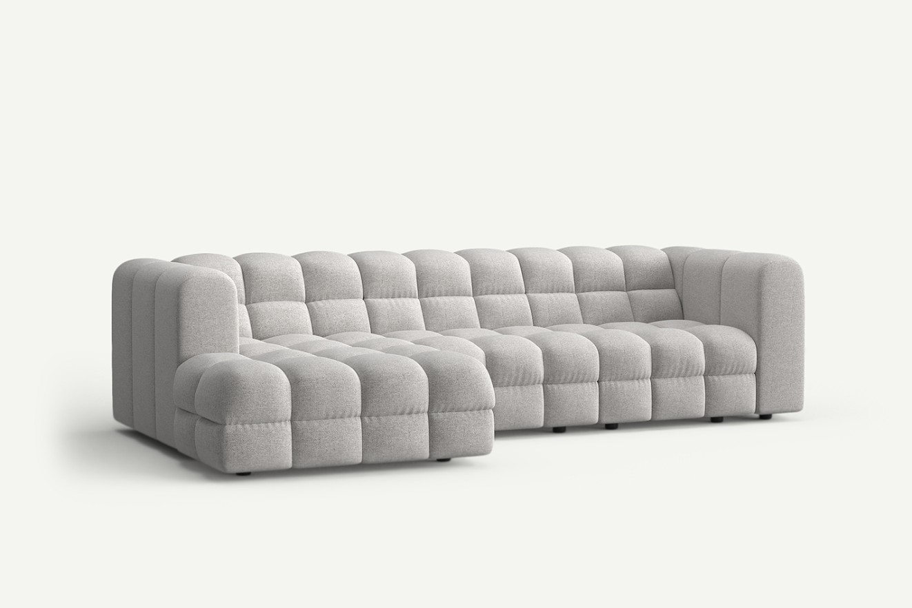 Narożnik modułowy Story to nowoczesny mebel z eleganckim pikowanym siedziskiem i zaokrąglonymi oparciami. Modułowa konstrukcja i przestronne wymiary zapewniają wygodę oraz możliwość dopasowania do każdego wnętrza.