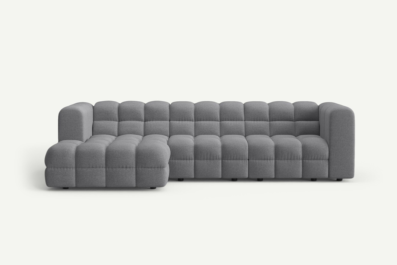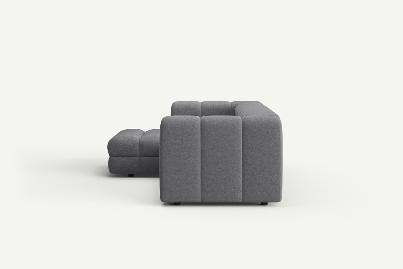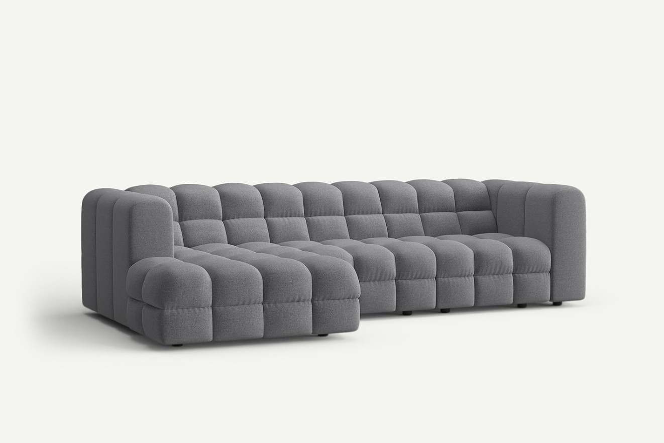Narożnik modułowy Story to nowoczesny mebel z eleganckim pikowanym siedziskiem i zaokrąglonymi oparciami. Modułowa konstrukcja i przestronne wymiary zapewniają wygodę oraz możliwość dopasowania do każdego wnętrza.