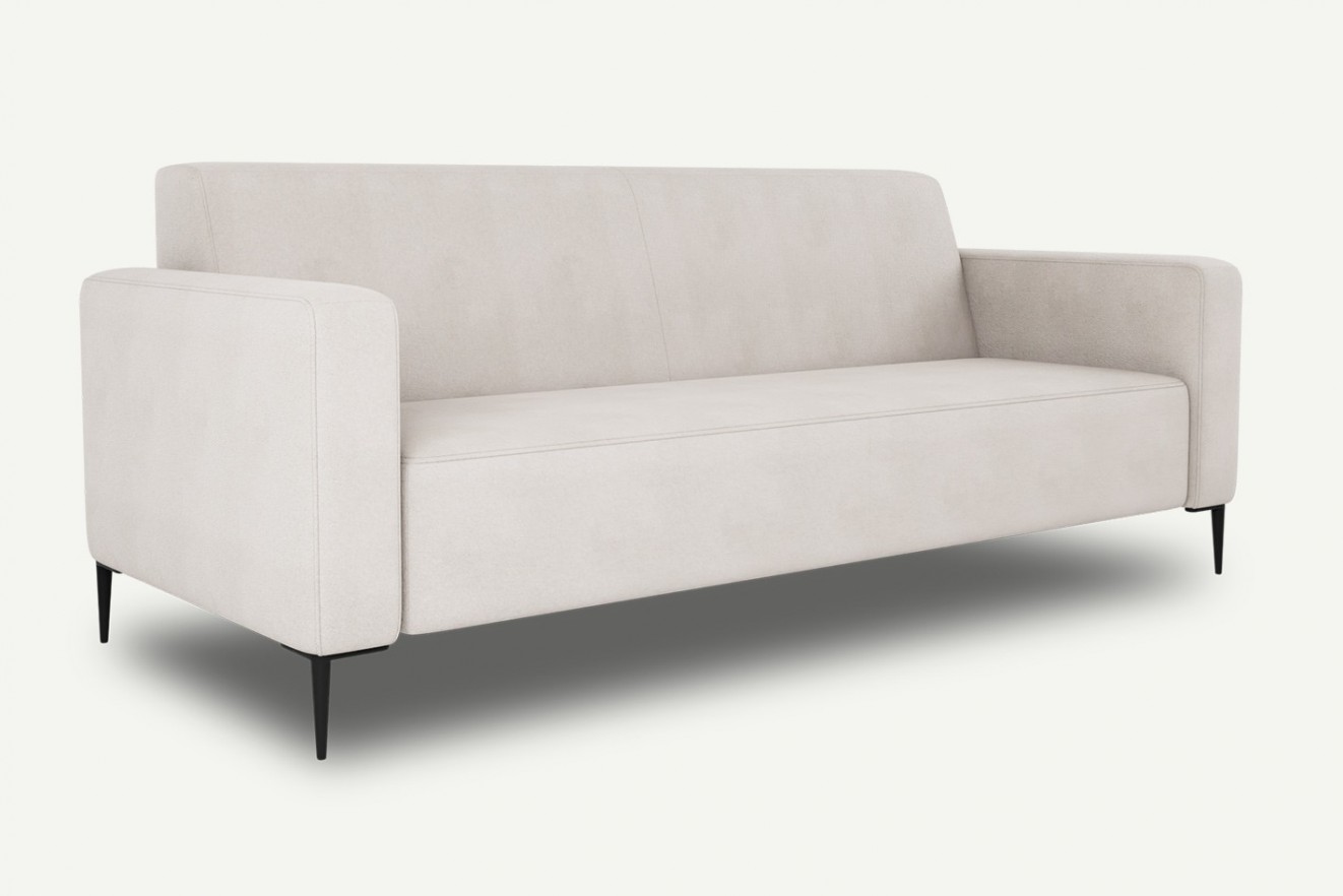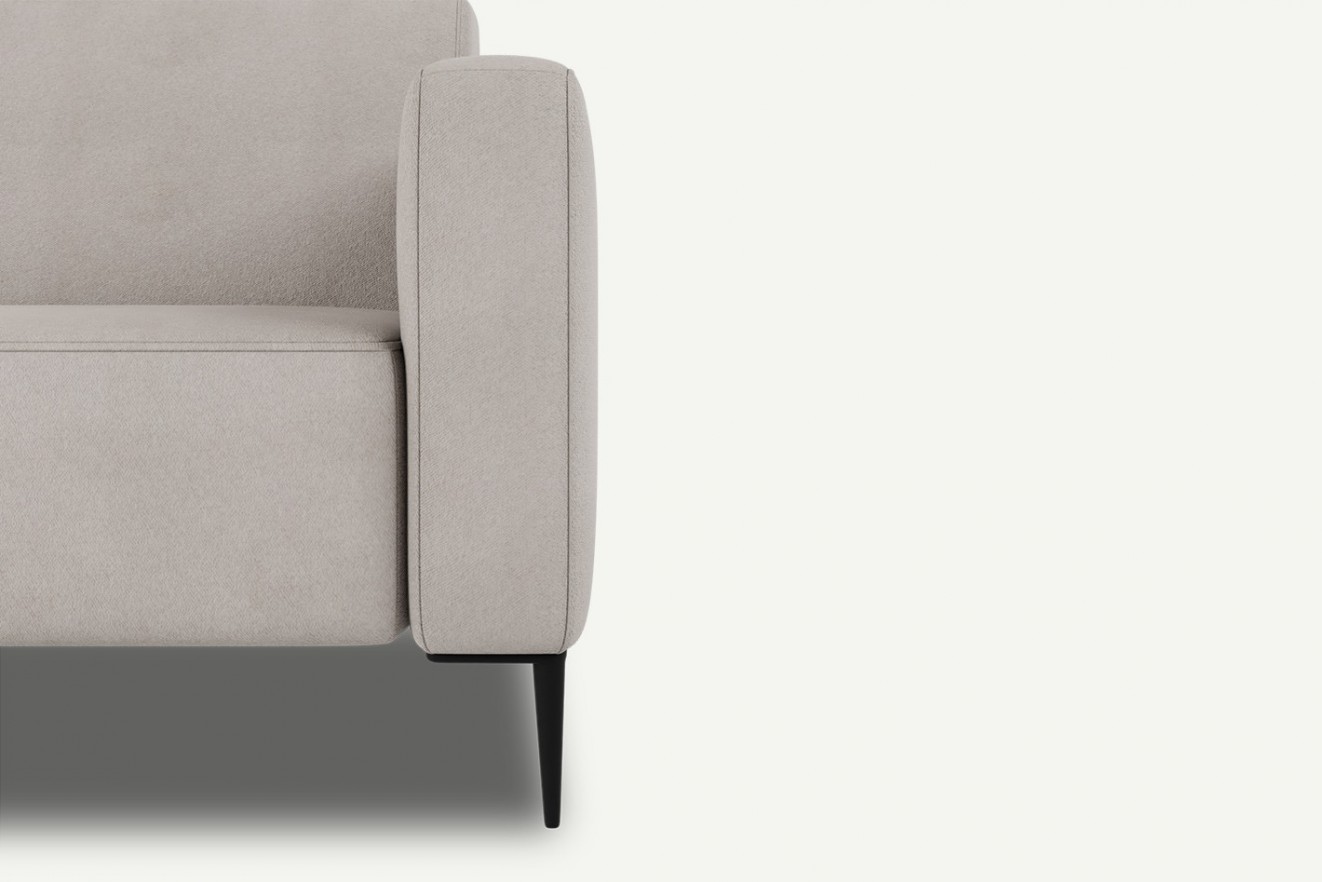 Prosta forma sofy Bolder, została osadzona na czarnych metalowych nóżkach. Siedzisko jest wypełnione sprężyną falistą w połączeniu z pianką HR, dzięki czemu powierzchnia jest elastyczna i bardzo szybko powraca do pierwotnego kształtu. Kunsztu i elegancji dodają delikatne przeszycia.