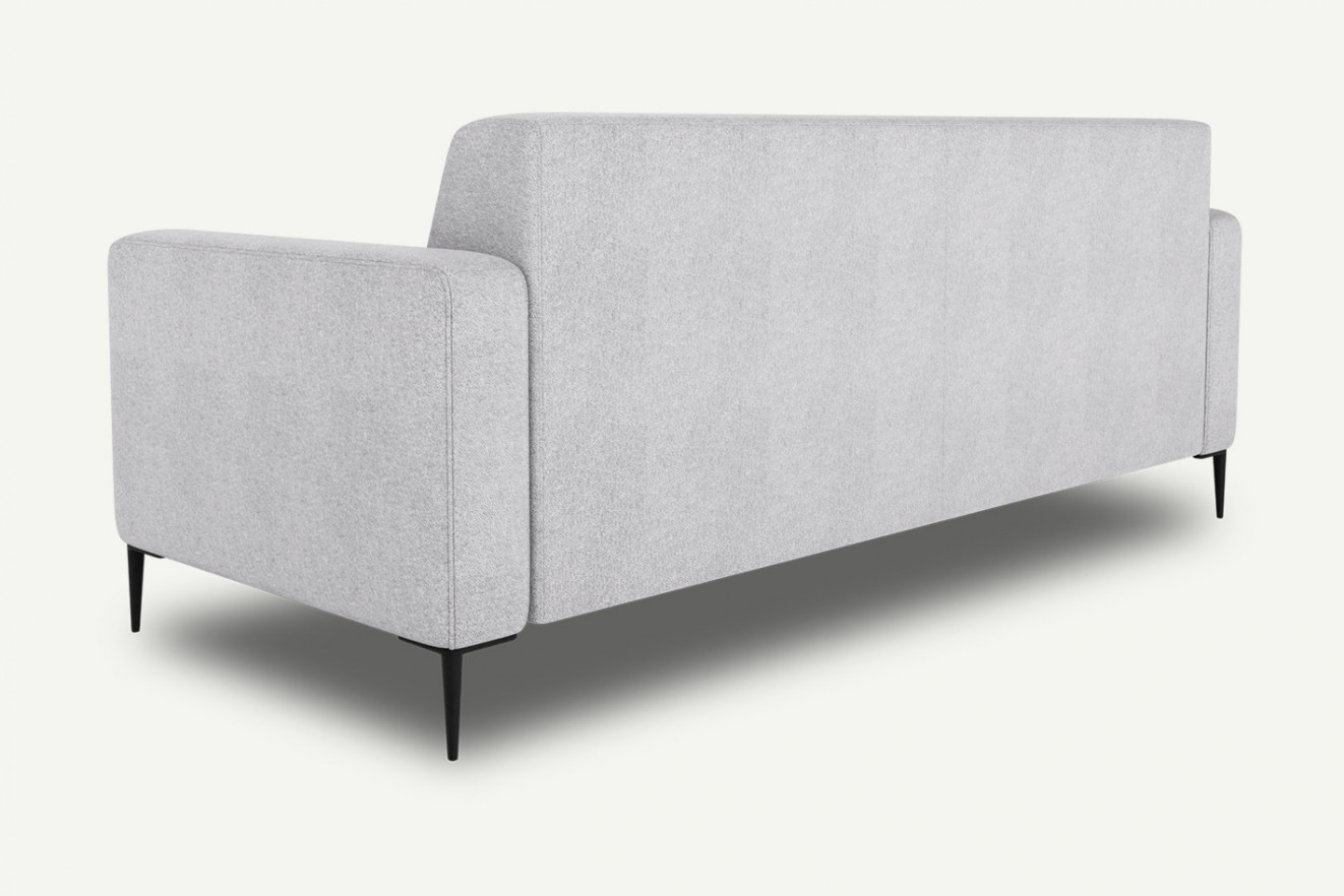 Prosta forma sofy Bolder, została osadzona na czarnych metalowych nóżkach. Siedzisko jest wypełnione sprężyną falistą w połączeniu z pianką HR, dzięki czemu powierzchnia jest elastyczna i bardzo szybko powraca do pierwotnego kształtu. Kunsztu i elegancji dodają delikatne przeszycia.