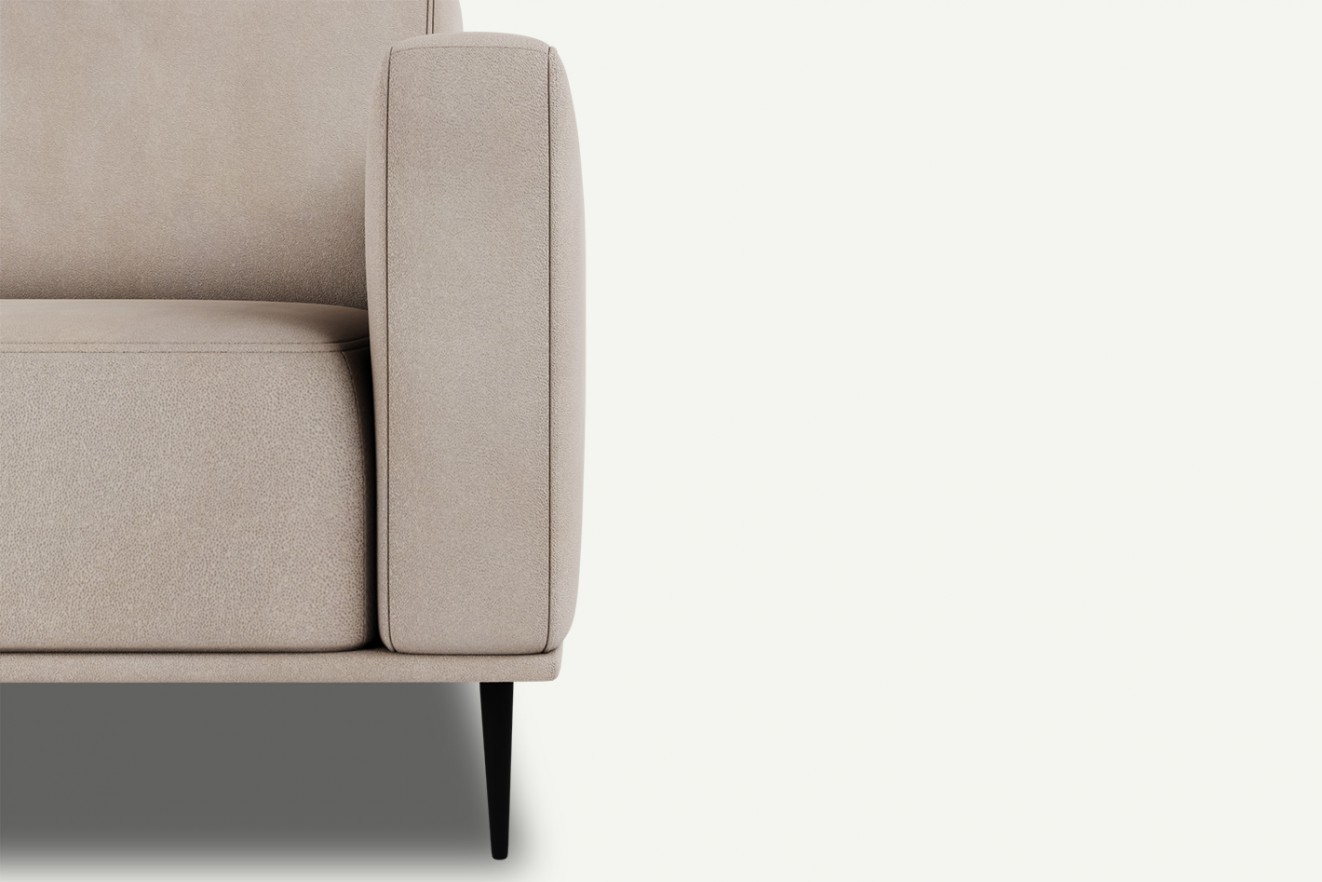 Solidna konstrukcja, miękki w dotyku materiał z wysokiej klasy tkaniny plecionej średnio twarde siedzisko z pianki wysokoelastycznej – wszystko to sprawia, iż codzienne użytkowanie nowoczesnej kanapy Daglas jest prawdziwą przyjemnością. Całość wspierają metalowe nóżki malowane na czarno, które zapewniają konstrukcji lekkość i stabilność.