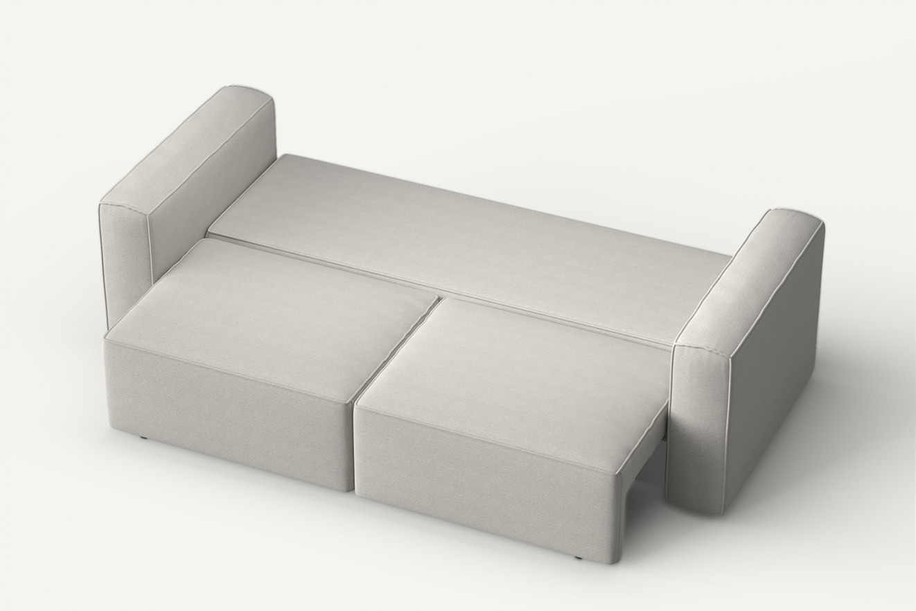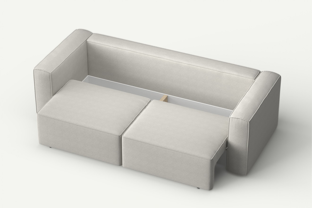 Pojemnik na pościel: Sofa jest wyposażona w praktyczny pojemnik na pościel, co pozwala na wygodne przechowywanie pościeli, koców i poduszek. Dzięki temu można utrzymać porządek i oszczędzać miejsce.