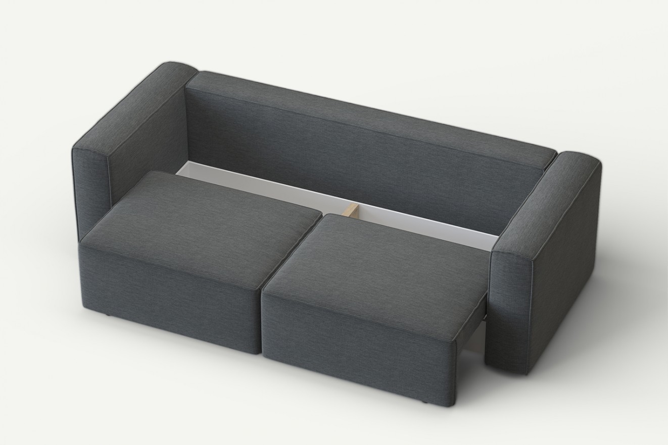 Pojemnik na pościel: Sofa jest wyposażona w praktyczny pojemnik na pościel, co pozwala na wygodne przechowywanie pościeli, koców i poduszek. Dzięki temu można utrzymać porządek i oszczędzać miejsce.