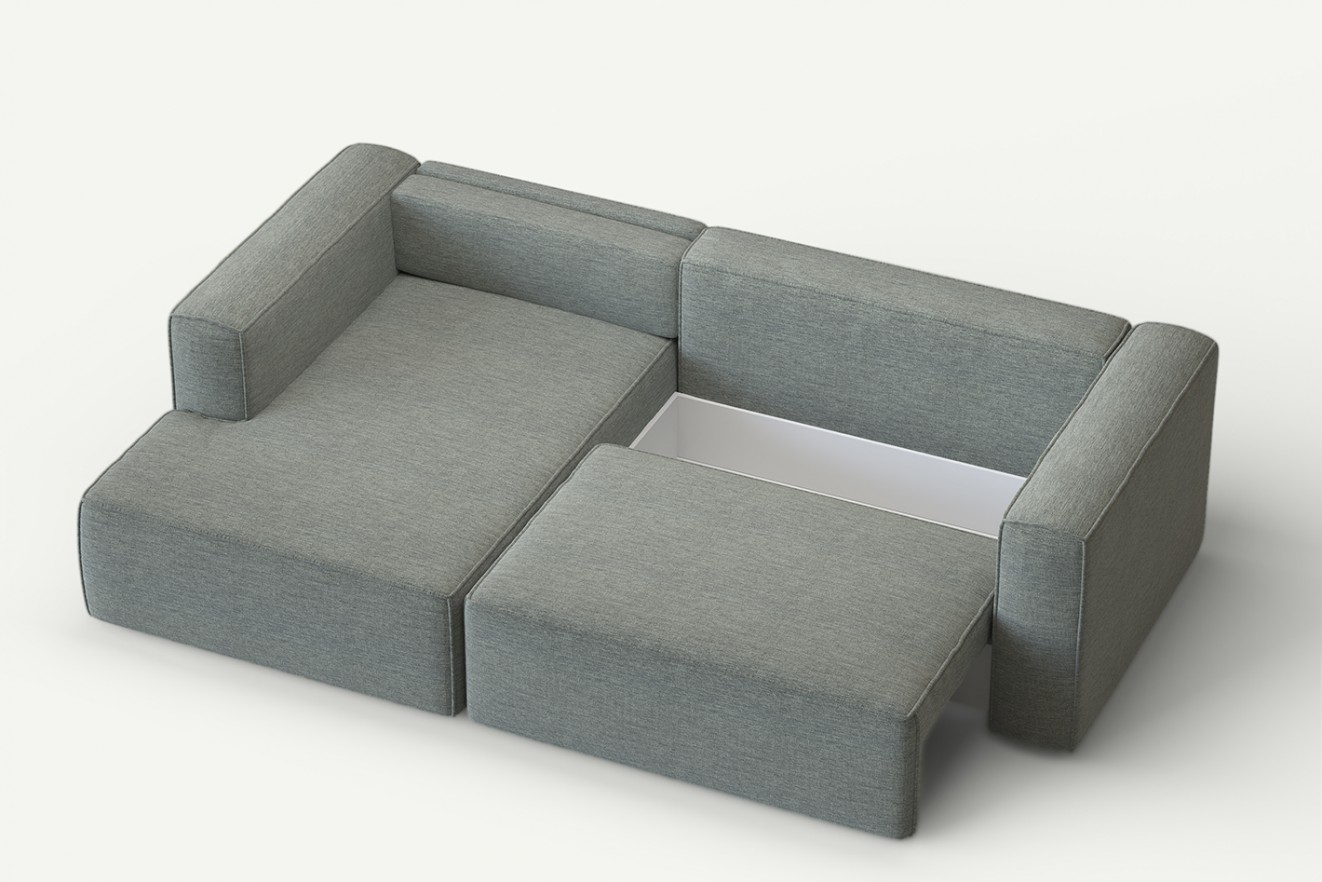 Pojemnik na pościel: Narożnik wyposażony jest w praktyczny pojemnik na pościel, co ułatwia przechowywanie kołder, poduszek i pościeli. Dzięki temu można zachować porządek i oszczędzić miejsce w innych miejscach.