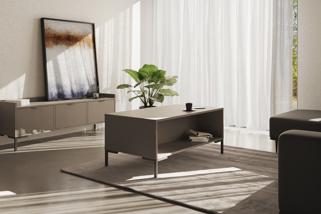Szafka RTV Klara to idealne rozwiązanie dla osób ceniących minimalistyczny design i praktyczność. Wykonana z wysokiej jakości płyty laminowanej, oferuje trwałość i estetykę, które doskonale wpisują się w nowoczesne wnętrza. Wykończenie w dwóch kolorach – beżowym lub grafitowym – pozwala dopasować szafkę do różnorodnych aranżacji salonu, tworząc spójną i stylową przestrzeń.